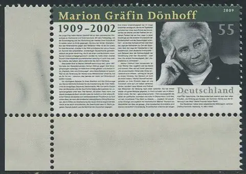 BUND 2009 Michel-Nummer 2766 postfrisch EINZELMARKE ECKRAND unten links