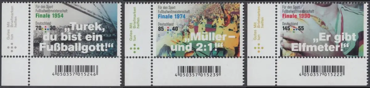 BUND 2018 Michel-Nummer 3380-3382 postfrisch SATZ(3) EINZELMARKEN ECKRÄNDER unten links