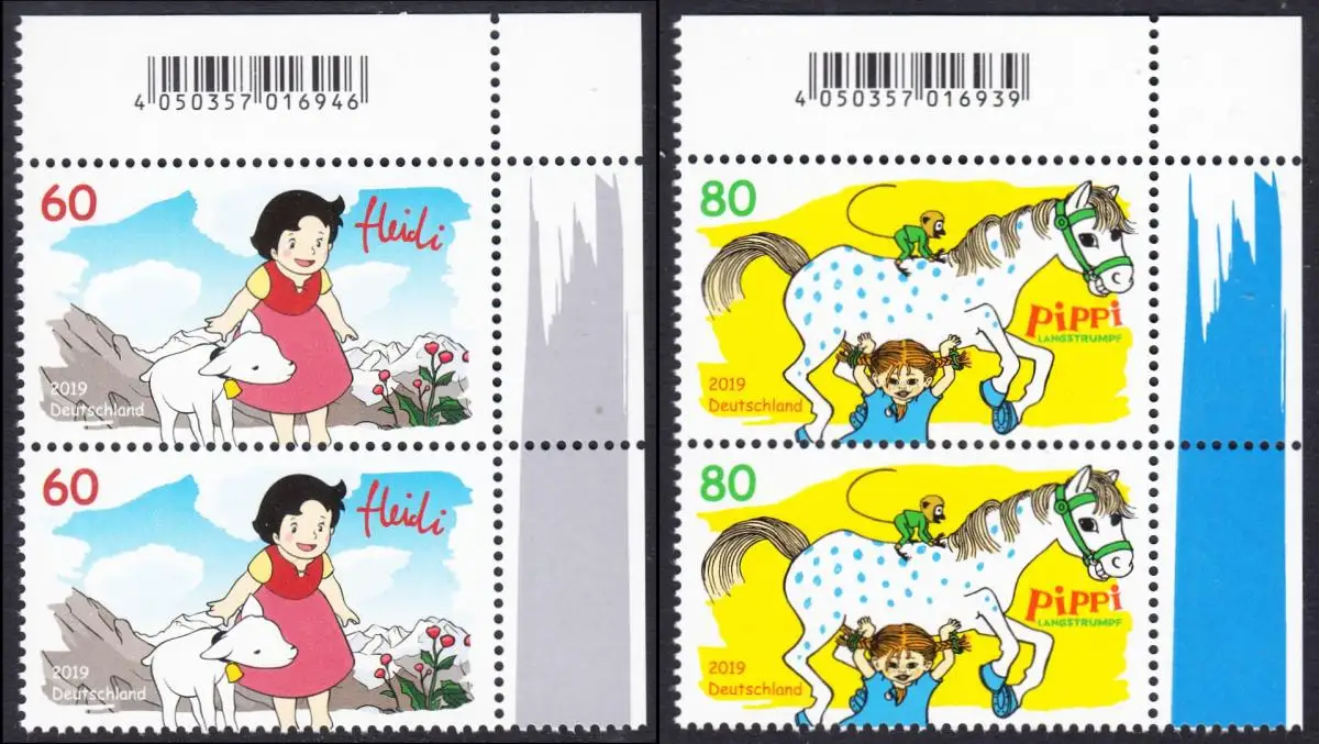 BUND 2019 Michel-Nummer 3506-3507 postfrisch SATZ(2) vert.PAARE ECKRÄNDER oben rechts