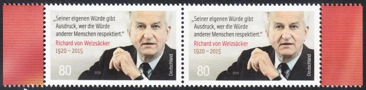 BUND 2020 Michel-Nummer 3539 postfrisch horiz.PAAR RÄNDER rechts/links (b)