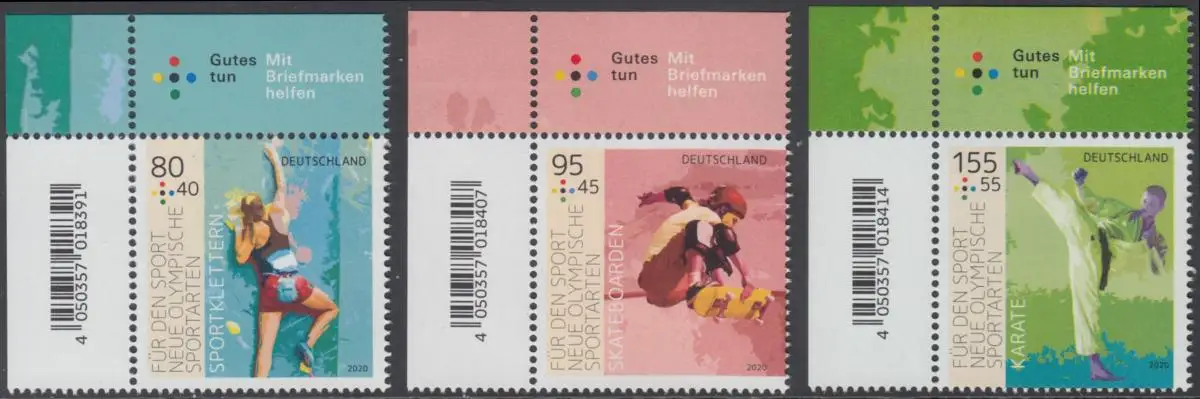 BUND 2020 Michel-Nummer 3542-3544 postfrisch SATZ(3) EINZELMARKEN ECKRÄNDER oben links