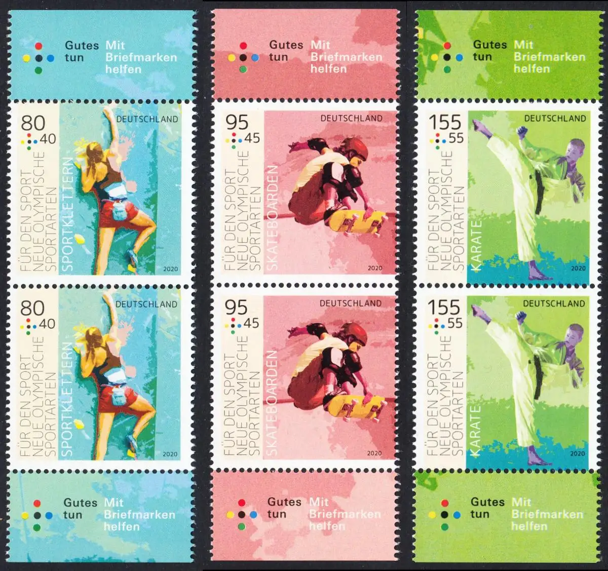 BUND 2020 Michel-Nummer 3542-3544 postfrisch SATZ(3) vert.PAARE RÄNDER oben/unten