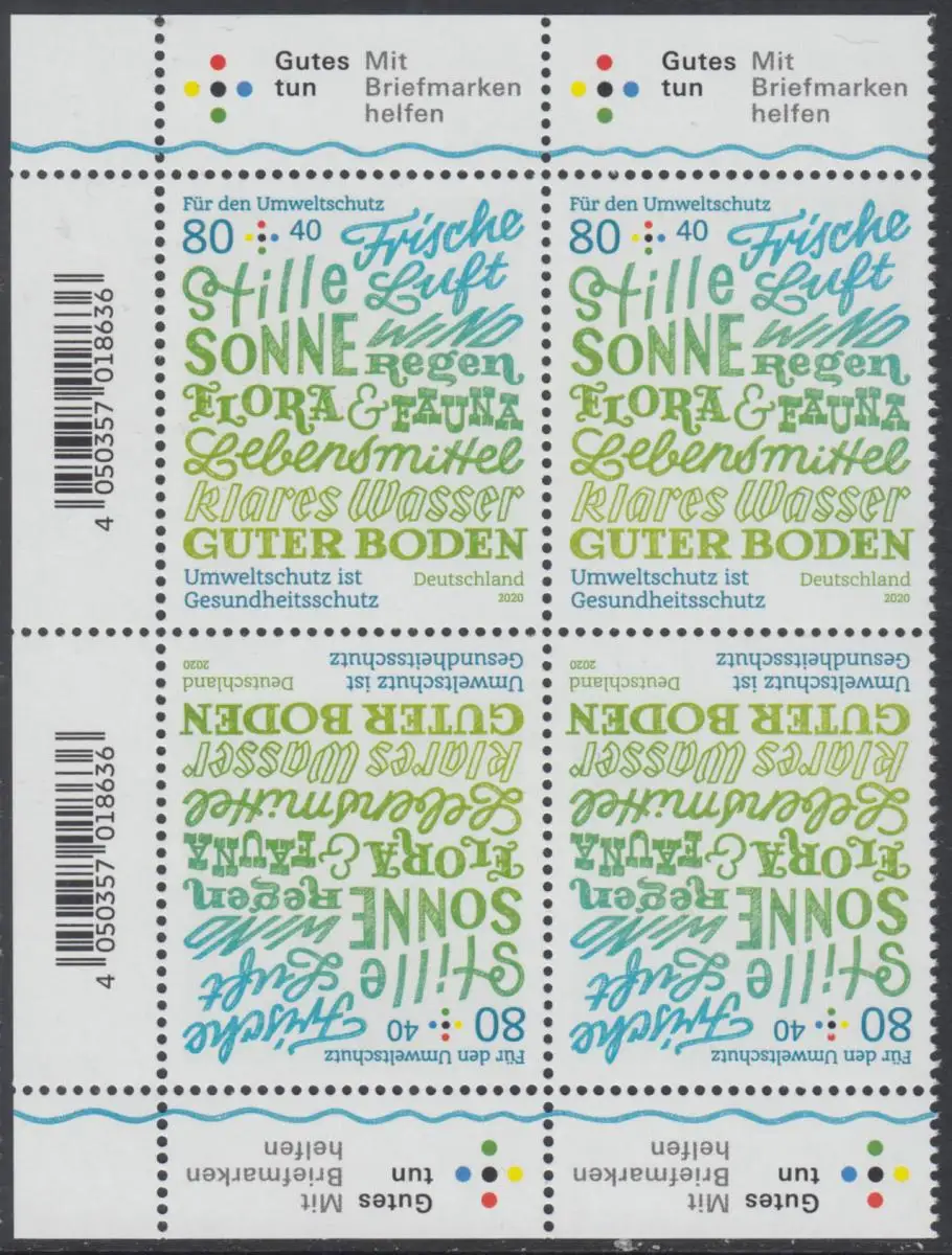 BUND 2020 Michel-Nummer 3561 postfrisch BLOCK ECKRÄNDER oben/unten links