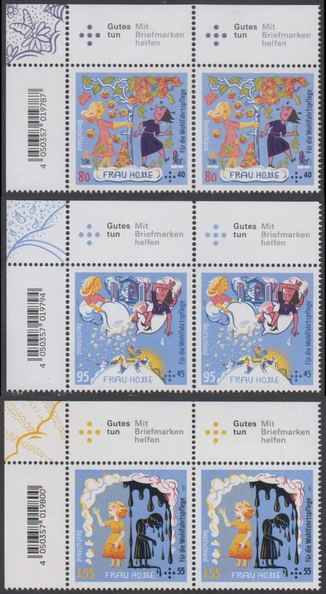 BUND 2021 Michel-Nummer 3585-3587 postfrisch SATZ(3) horiz.PAARE ECKRÄNDER oben links