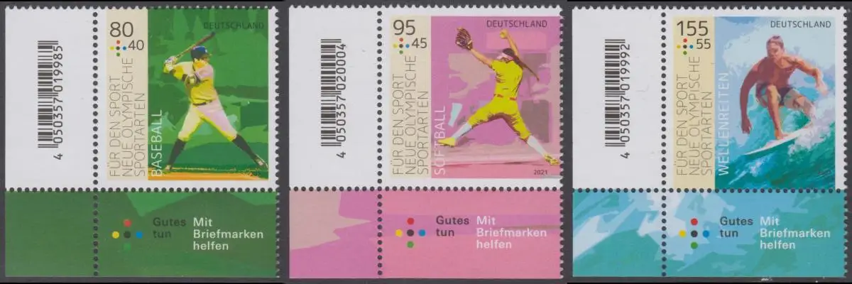 BUND 2021 Michel-Nummer 3602-3604 postfrisch SATZ(3) EINZELMARKEN ECKRÄNDER unten links