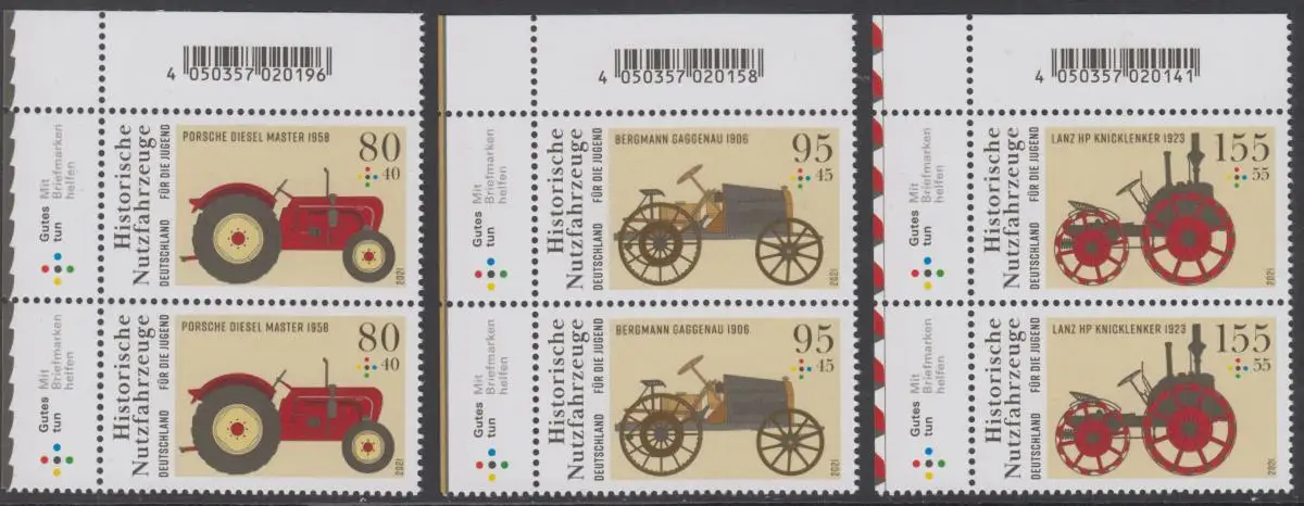 BUND 2021 Michel-Nummer 3618-3620 postfrisch SATZ(3) vert.PAARE ECKRÄNDER oben links