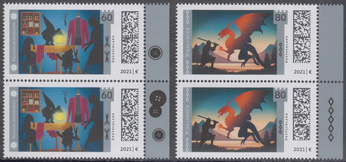 BUND 2021 Michel-Nummer 3631-3632 postfrisch SATZ(2) vert.PAAR RÄNDER rechts (a)