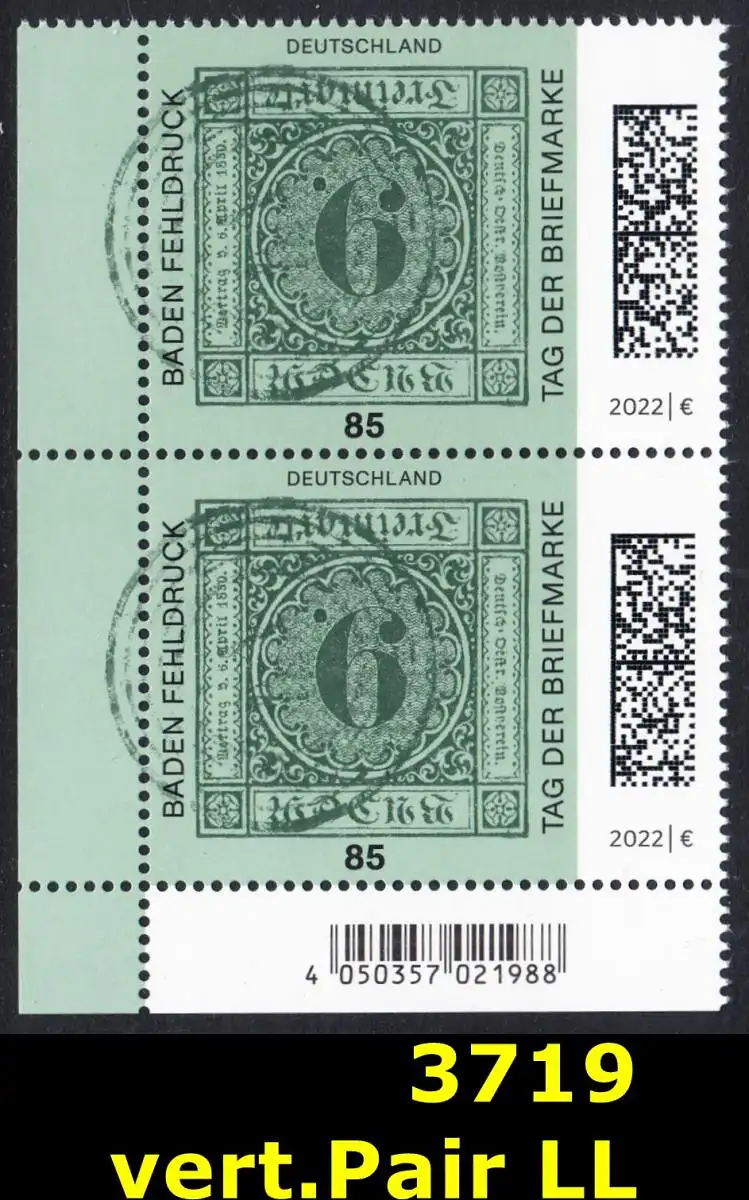BUND 2022 Michel-# 3719 postfrisch vert.PAAR ECKRAND unten links