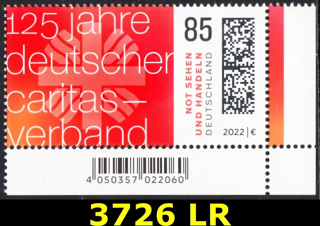 BUND 2022 Michel-# 3726 postfrisch EINZELMARKE ECKRAND unten rechts