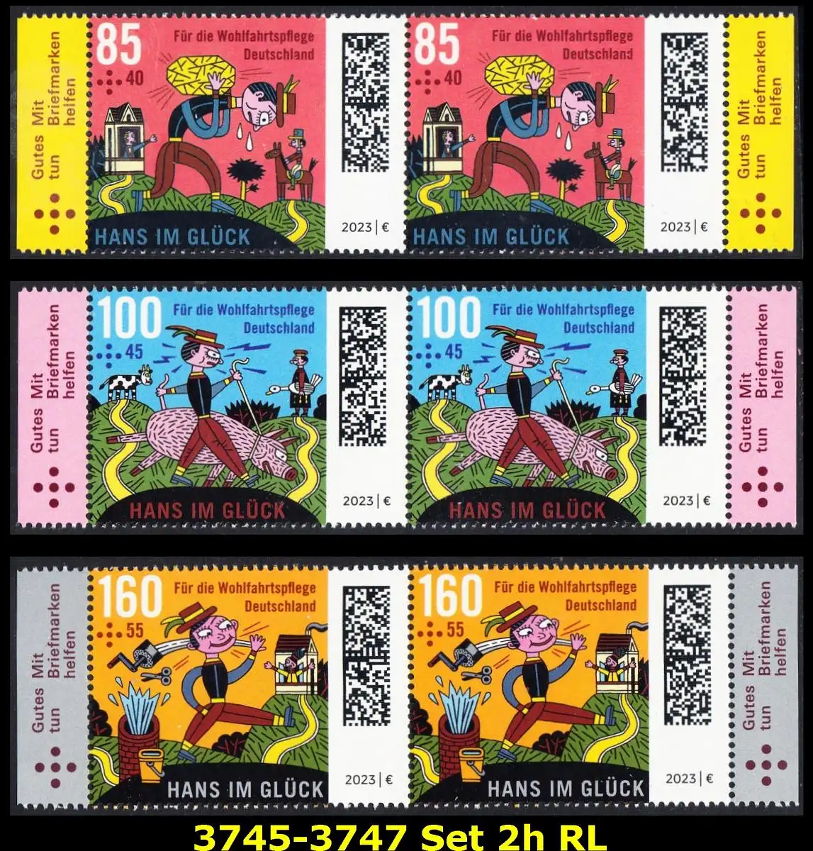 BUND 2023 Michel-# 3745-3747 postfrisch SATZ(3) horiz.PAARE RÄNDER rechts/links