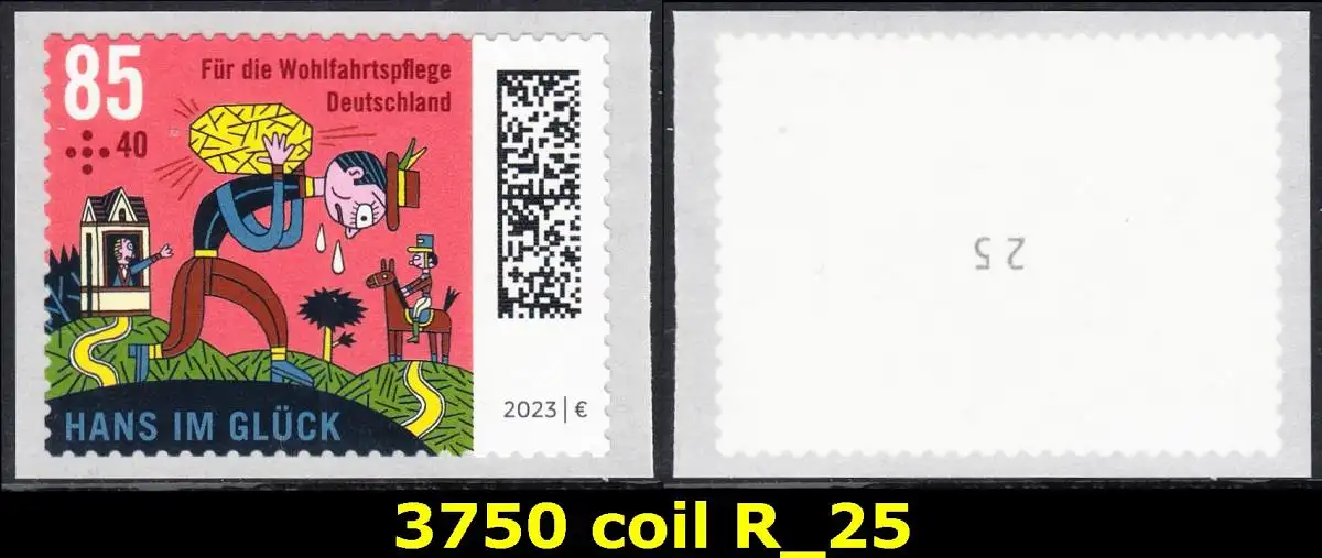 BUND 2023 Michel-# 3750 postfrisch EINZELMARKE (coil) m/ rücks.Rollen-# 25 -selbstklebend-