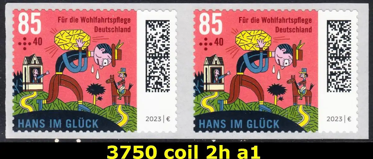 BUND 2023 Michel-# 3750 postfrisch horiz.PAAR (coils) -selbstklebend- (a1)