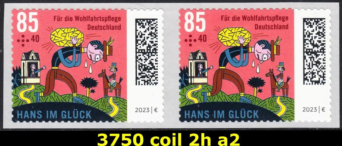 BUND 2023 Michel-# 3750 postfrisch horiz.PAAR (coils) -selbstklebend- (a2)