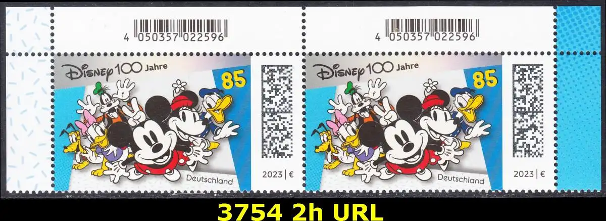 BUND 2023 Michel-# 3754 postfrisch horiz.PAAR ECKRÄNDER oben rechts/links