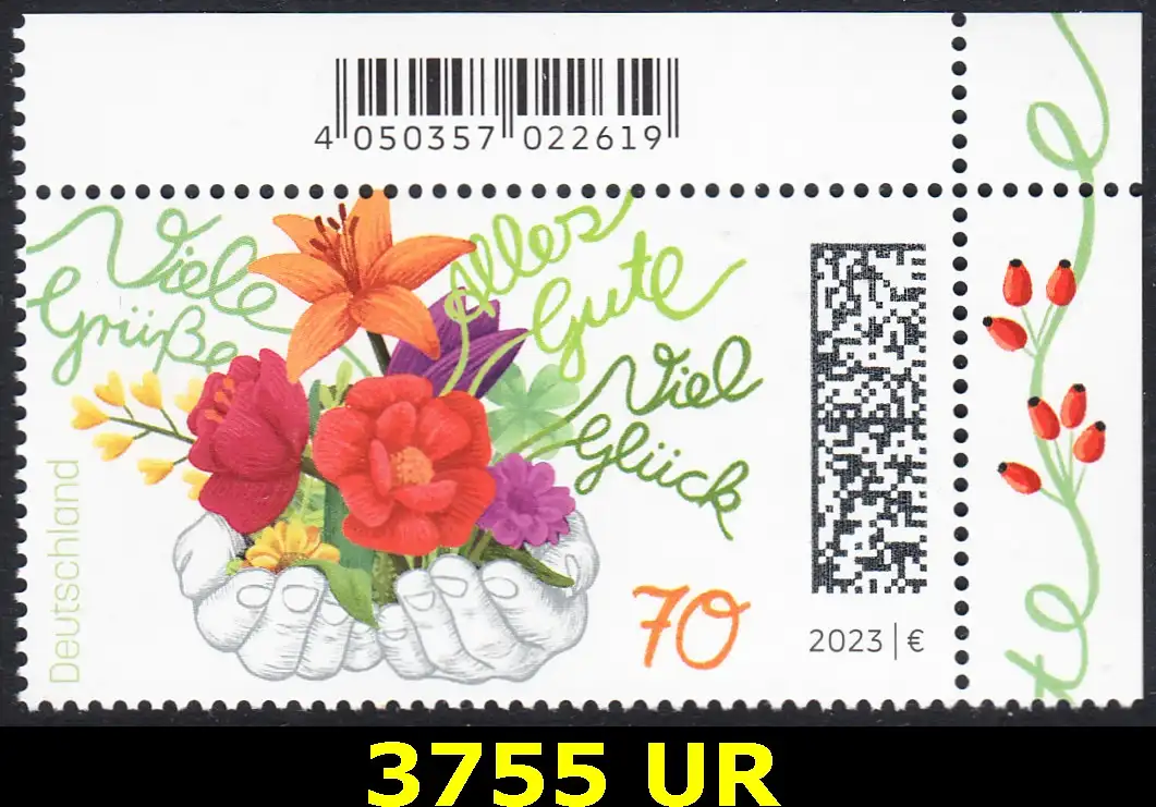 BUND 2023 Michel-# 3755 postfrisch EINZELMARKE ECKRAND oben rechts