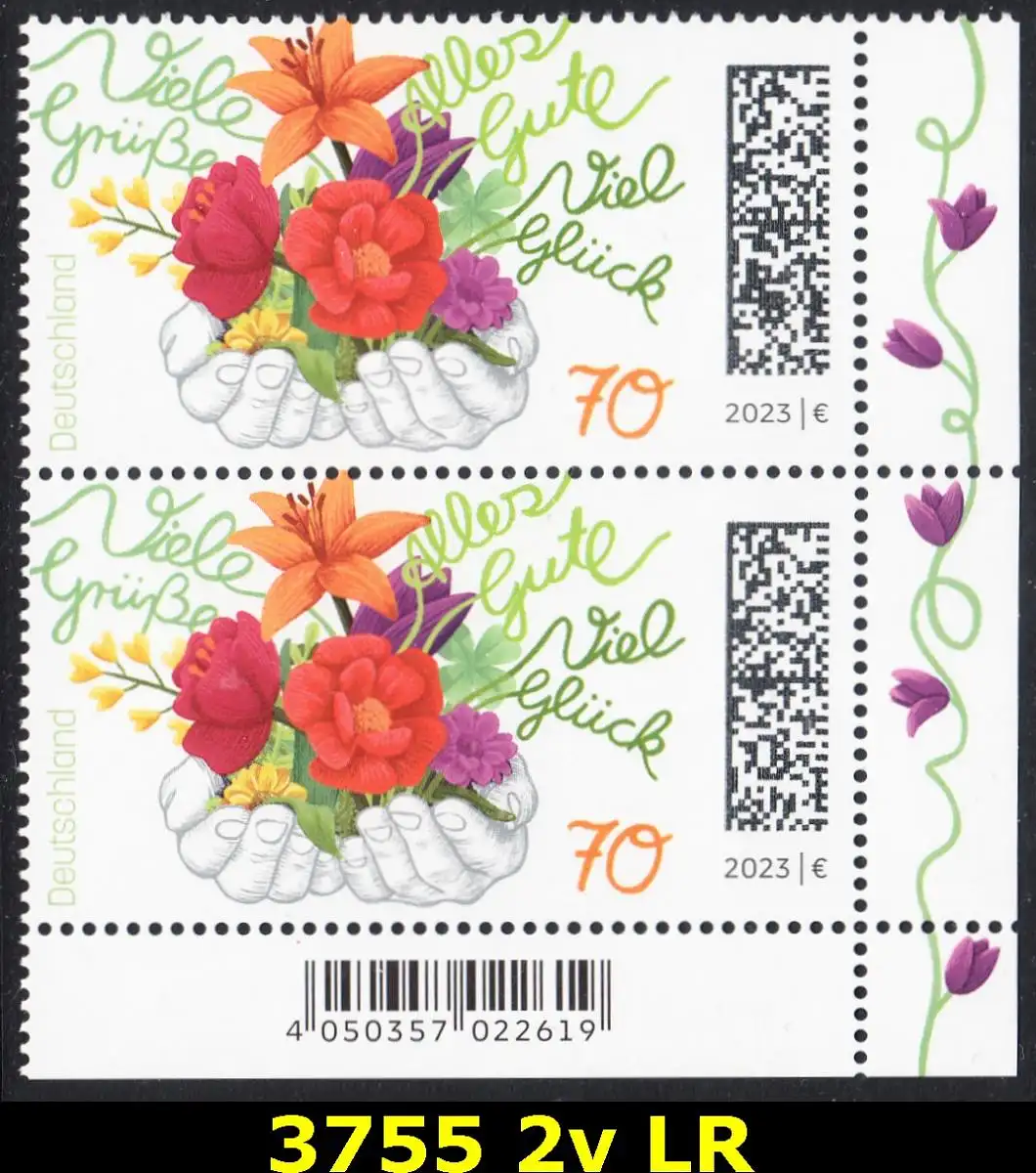 BUND 2023 Michel-# 3755 postfrisch vert.PAAR ECKRAND unten rechts