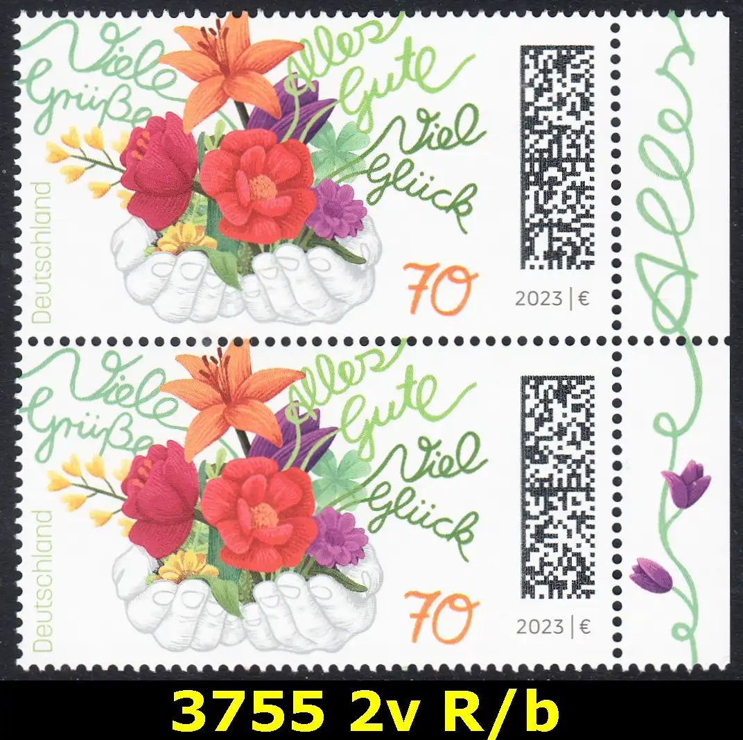 BUND 2023 Michel-# 3755 postfrisch vert.PAAR RÄNDER rechts (b)