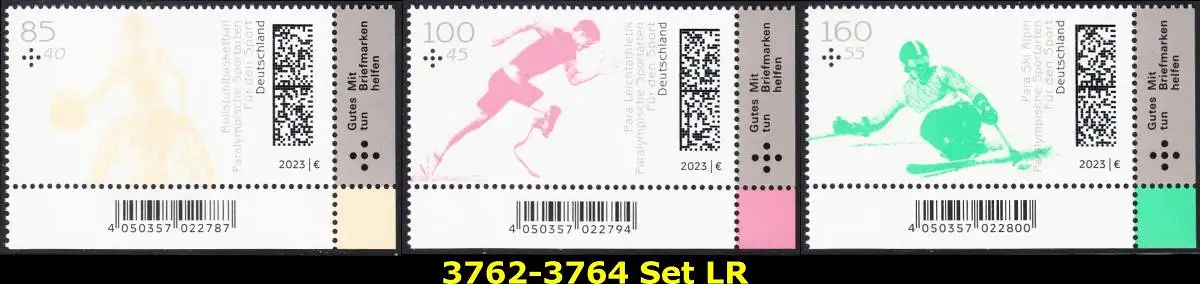 BUND 2023 Michel-# 3762-3764 postfrisch SATZ(3) EINZELMARKEN ECKRÄNDER unten rechts