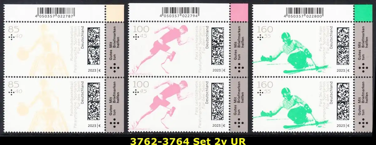 BUND 2023 Michel-# 3762-3764 postfrisch SATZ(3) vert .PAARE ECKRÄNDER oben rechts