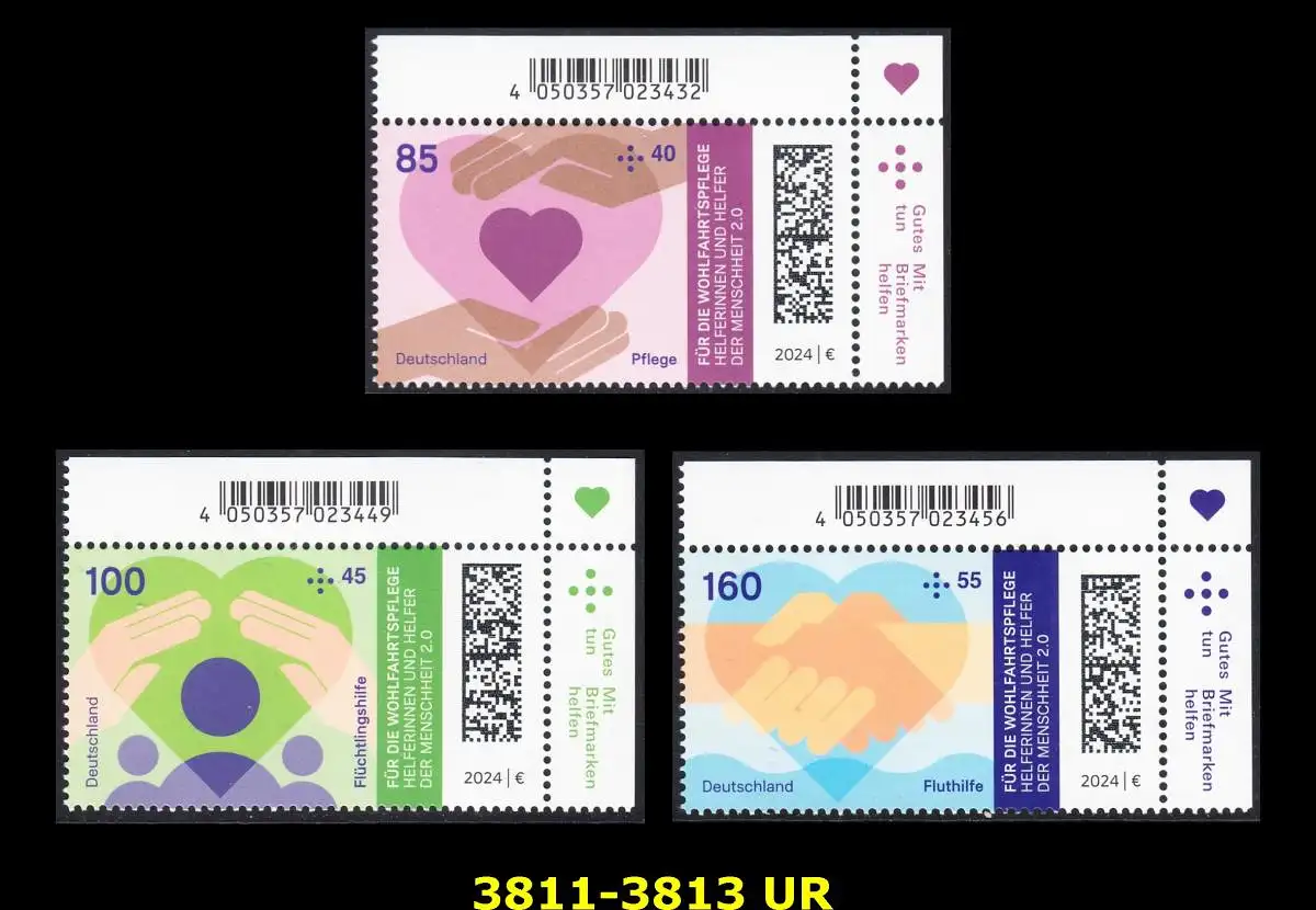 BUND 2024 Michel-# 3811-3813 postfrisch SATZ(3) EINZELMARKEN ECKRÄNDER oben rechts