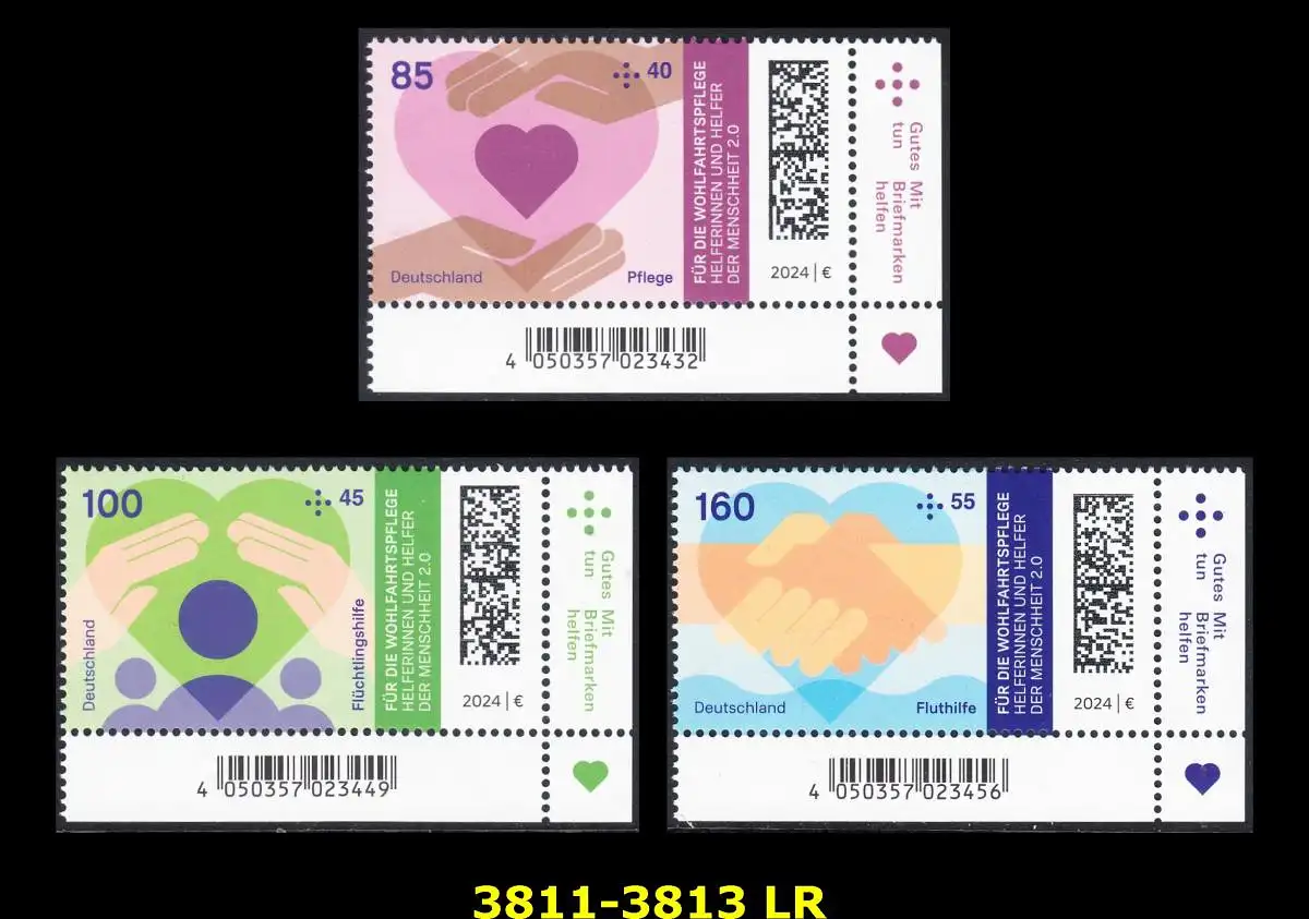 BUND 2024 Michel-# 3811-3813 postfrisch SATZ(3) EINZELMARKEN ECKRÄNDER unten rechts