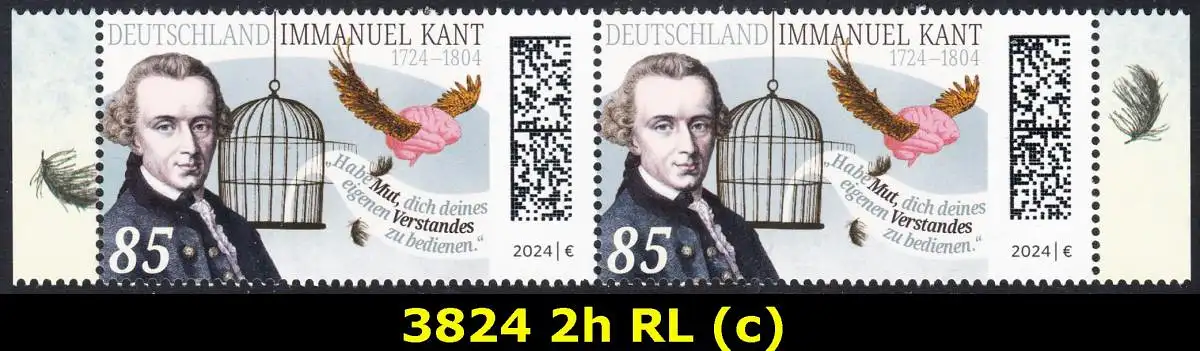 BUND 2024 Michel-# 3824 postfrisch horiz.PAAR RÄNDER rechts/links (c)