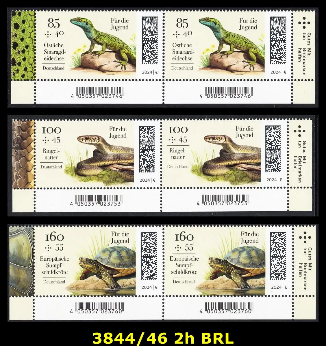 BUND 2024 Michel-# 3844-3846 postfrisch SATZ(3) horiz.PAARE ECKRÄNDER unten rechts/links