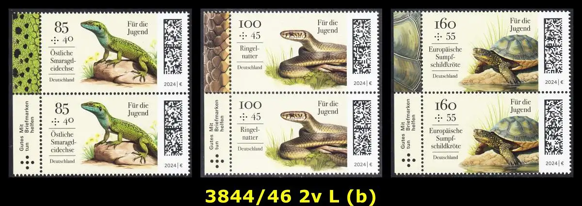 BUND 2024 Michel-# 3844-3846 postfrisch SATZ(3) vert.PAARE RÄNDER links (b)
