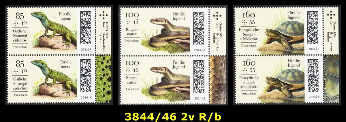 BUND 2024 Michel-# 3844-3846 postfrisch SATZ(3) vert.PAARE RÄNDER rechts (b)