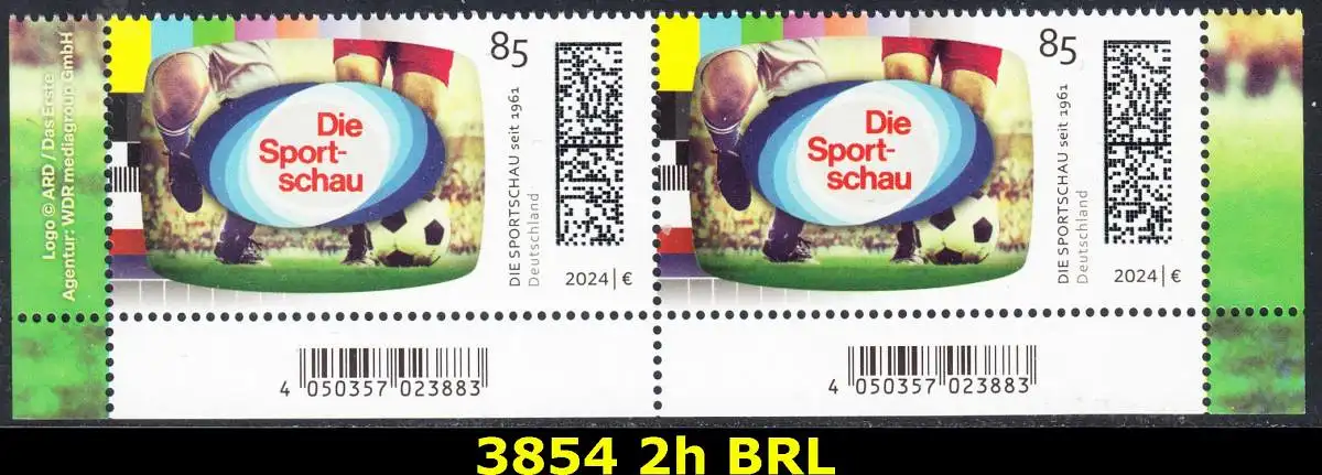 BUND 2024 Michel-# 3854 postfrisch horiz.PAAR ECKRÄNDER unten rechts & links
