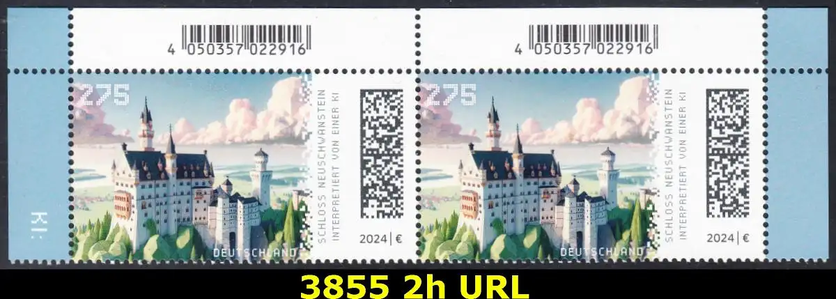 BUND 2024 Michel-# 3855 postfrisch horiz.PAAR ECKRÄNDER oben rechts & links