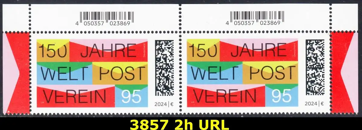 BUND 2024 Michel-# 3857 postfrisch horiz.PAAR ECKRÄNDER oben rechts & links