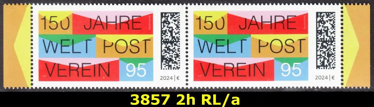 BUND 2024 Michel-# 3857 postfrisch horiz.PAAR RÄNDER rechts & links (a)