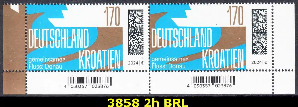 BUND 2024 Michel-# 3858 postfrisch horiz.PAAR ECKRÄNDER unten rechts & links