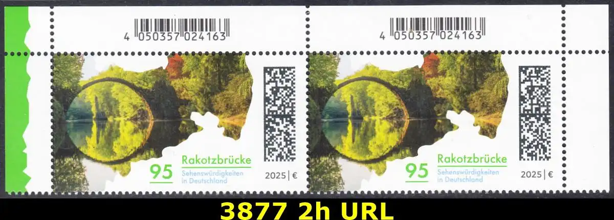 BUND 2025 Michel-# 3877 postfrisch horiz.PAAR ECKRÄNDER oben rechts/links