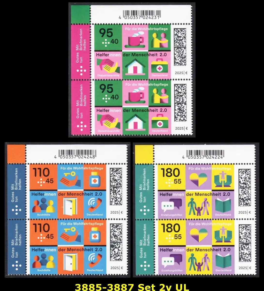 BUND 2025 Michel-# 3885-3887 postfrisch SATZ(3) vert.PAARE ECKRÄNDER oben links