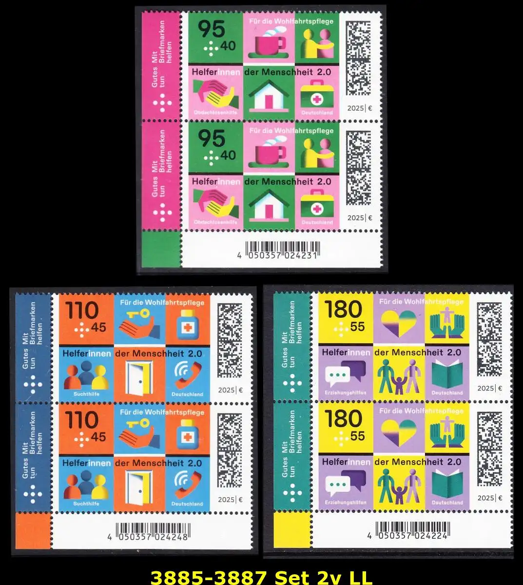 BUND 2025 Michel-# 3885-3887 postfrisch SATZ(3) vert.PAARE ECKRÄNDER unten links