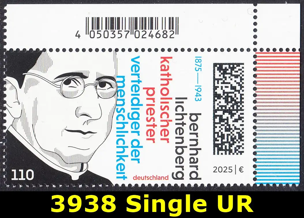 BUND 2025 Michel-# 3938 postfrisch EINZELMARKE ECKRAND oben rechts
