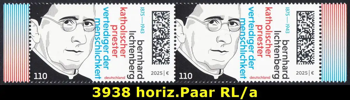 BUND 2025 Michel-# 3938 postfrisch horiz.PAAR RÄNDER rechts/links (a)