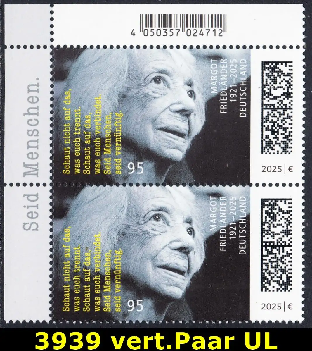 BUND 2025 Michel-# 3939 postfrisch vert.PAAR ECKRAND oben links