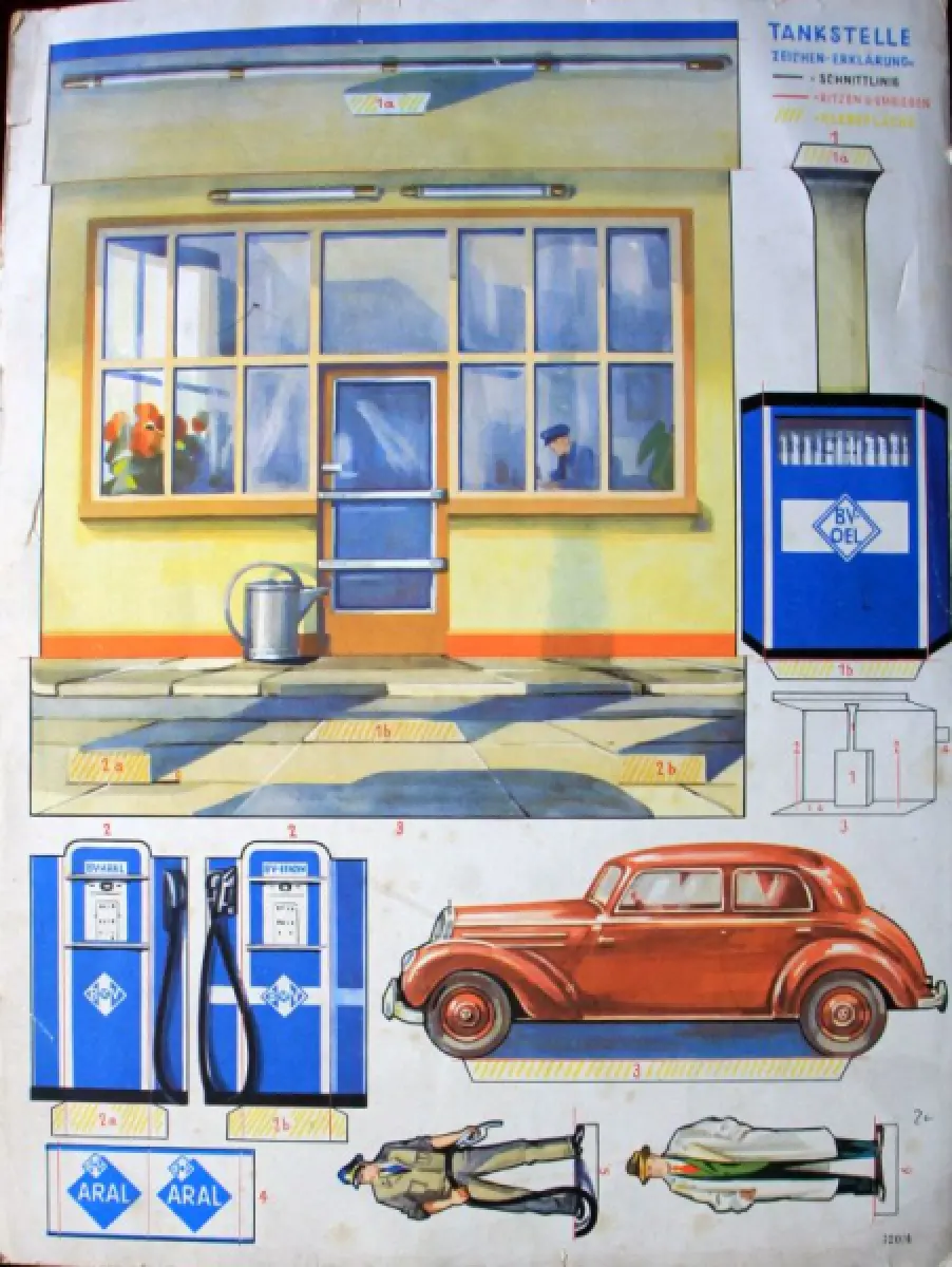 BV Aral Tankstelle Schreiber-Bastelbogen mit Tankwart 1953 Karton (10598)