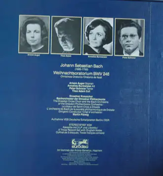 BWV 248; Oratorio de Noel; Arleen Auger, Annelies Burmeister, Peter Schreier, Theo Adam,