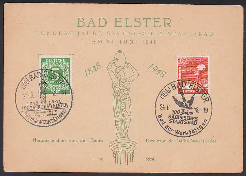 Bad Elster Gedenkblatt 100 Jahre Bad der Werkt„tigen SSt. 24.6.48