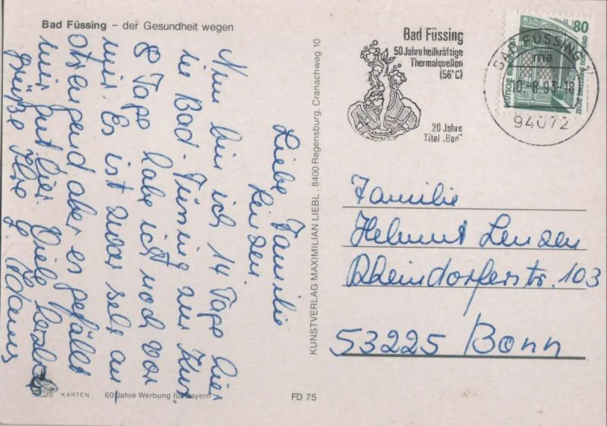Postleitzahl:94072 (neu) / W 8399 (alt)