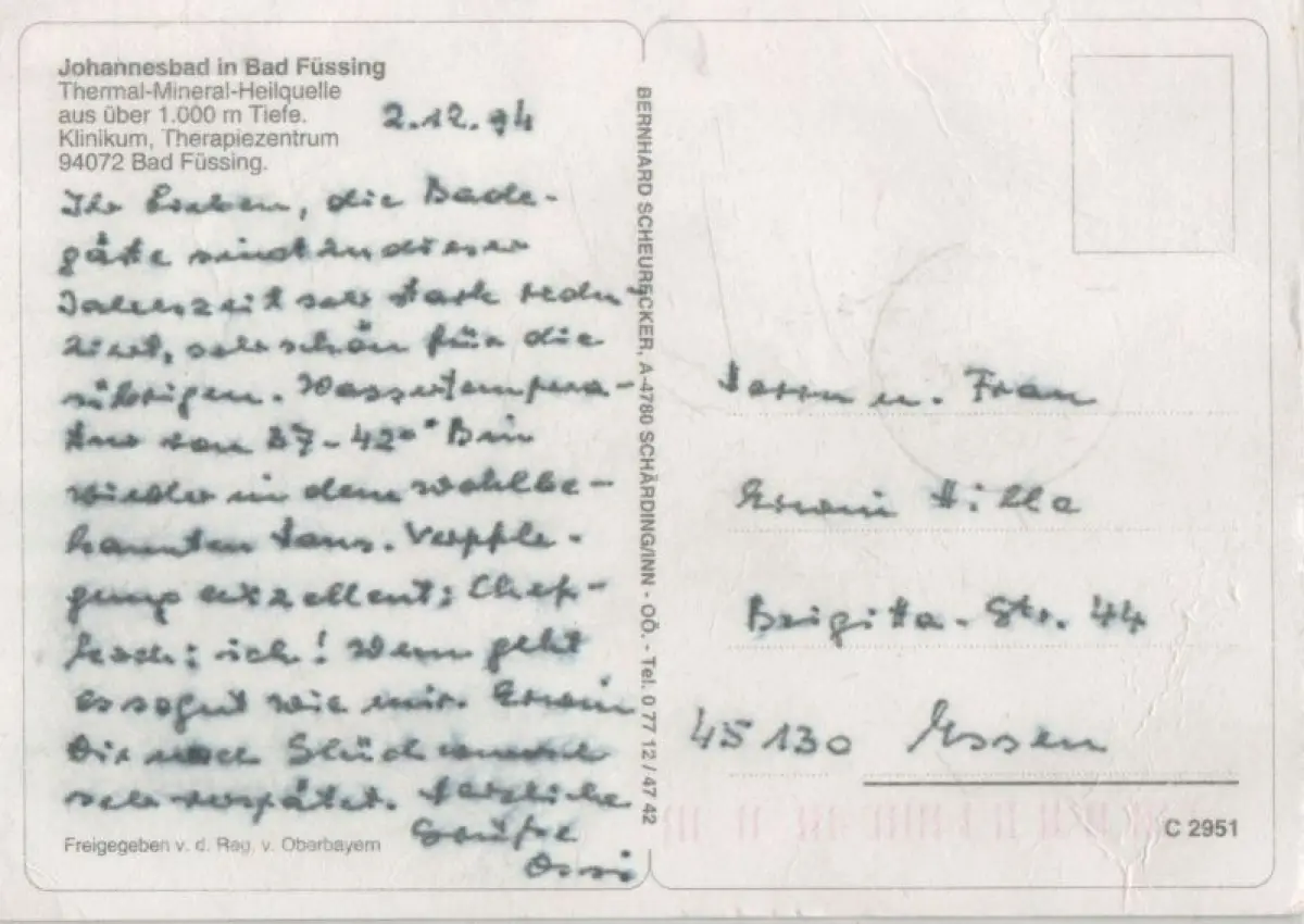 Postleitzahl:94072 (neu) / W 8399 (alt)