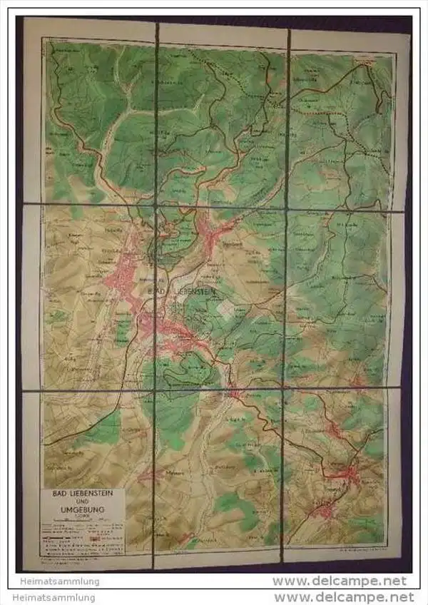 Bad Liebenstein und Umgebung 1957 - VEB Landkartenverlag - 1:20 000 auf Leinen - 42cm x 60cm - Beliebte Wanderwege - Bahnhof Jugendherberge Fussweg etc. (EP5284)