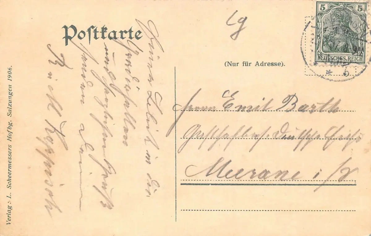 Rückseite: gelaufen 1907