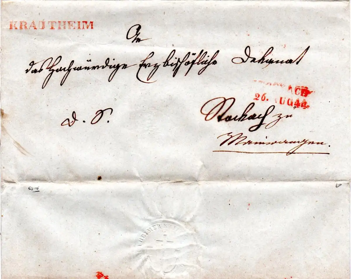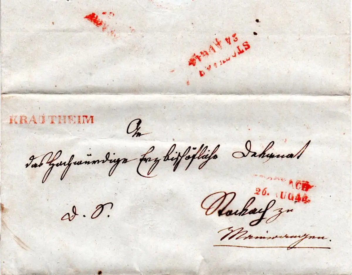 Baden 1844, L1 Krautheim u. L2 Stockach je in rot auf Brief Nachsendebrief