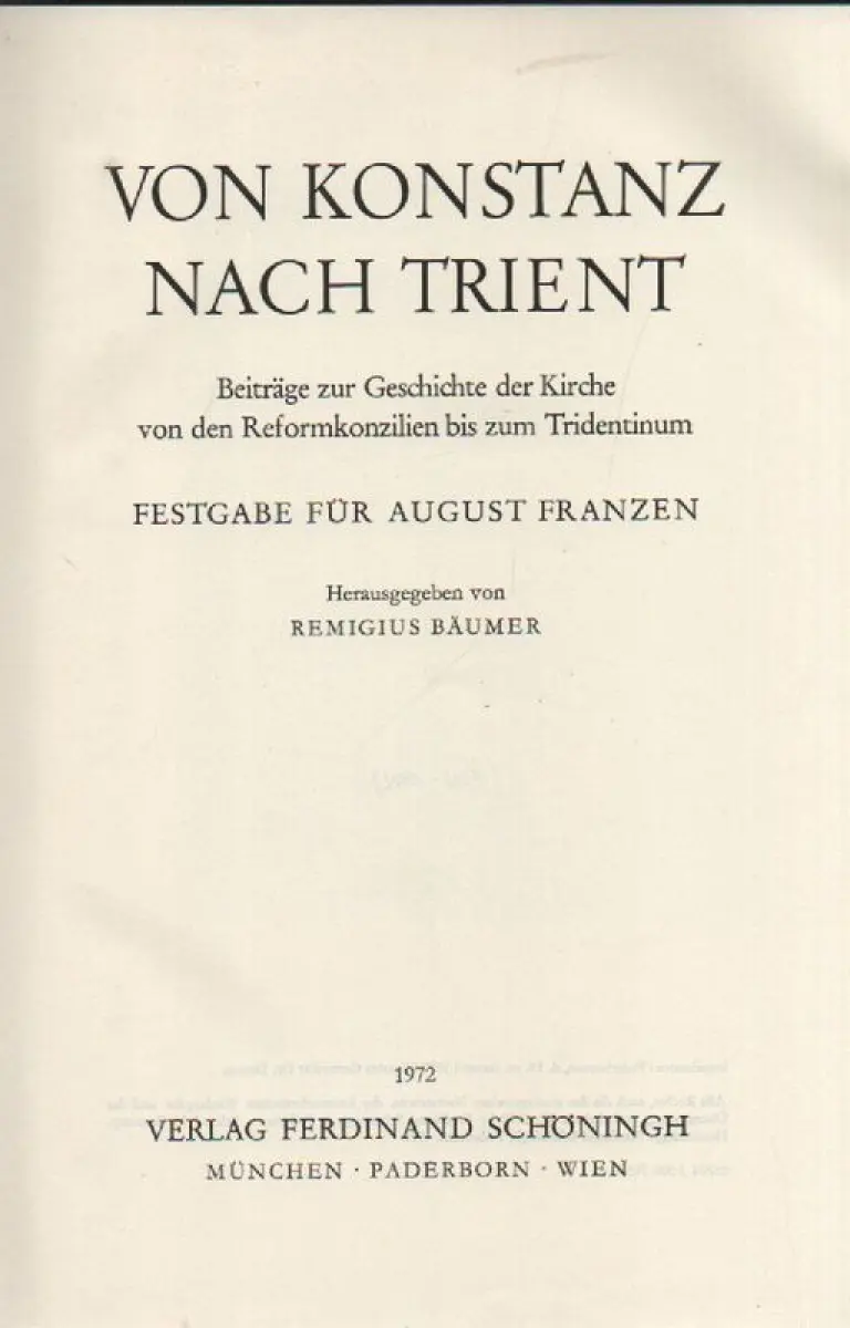 Bäumer, Remigius / Franzen, August (Gefeierter): Von Konstanz nach Trient: Beiträge zur Geschichte der Kirche von den Reformkonzilien bis zum Tridentinum ; Festgabe für August Franzen.