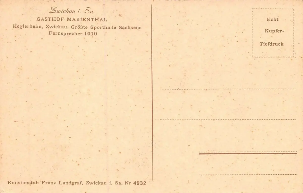 Ballsaal Gasthof Marienthal Zwickau i. Sa. Postkarte